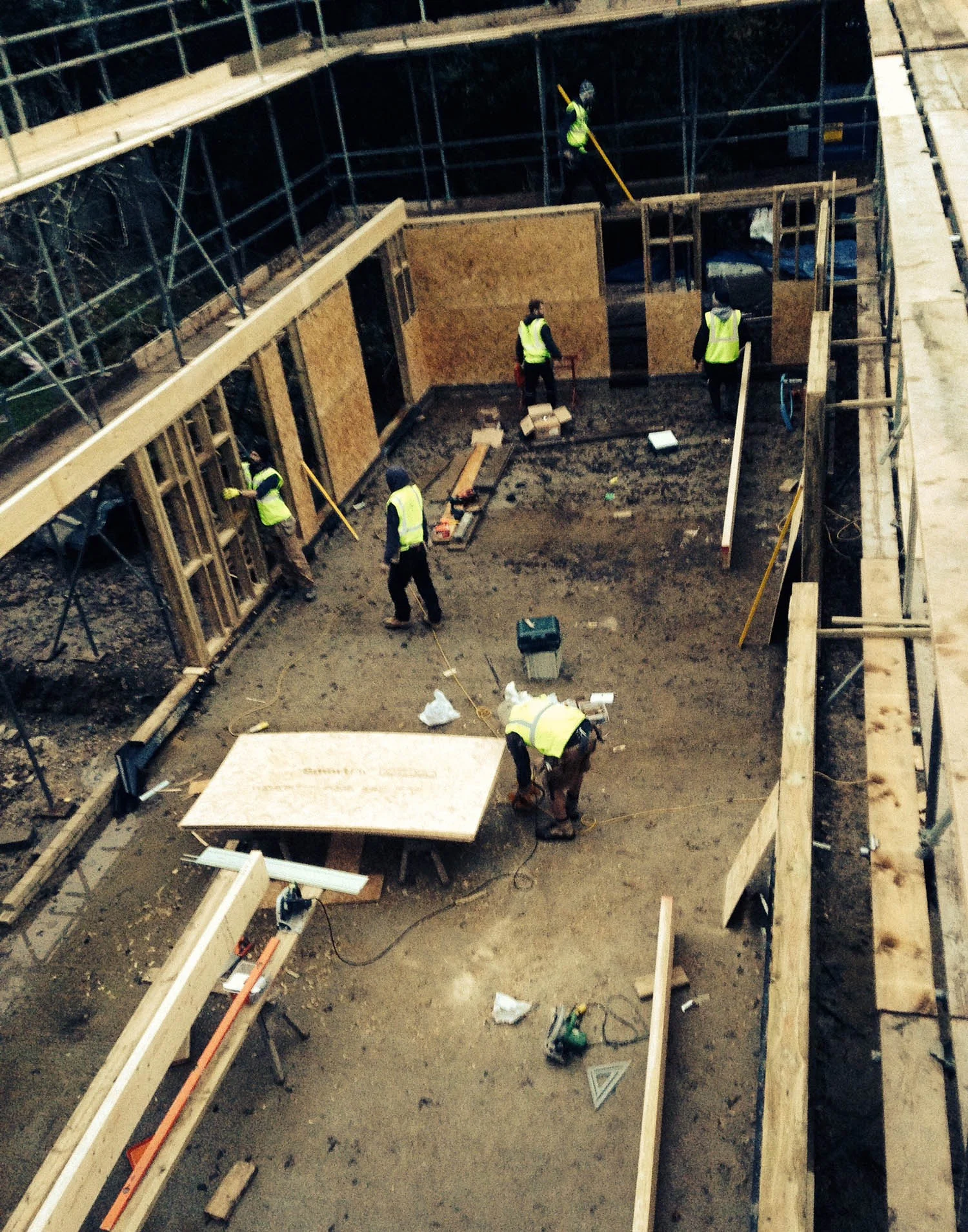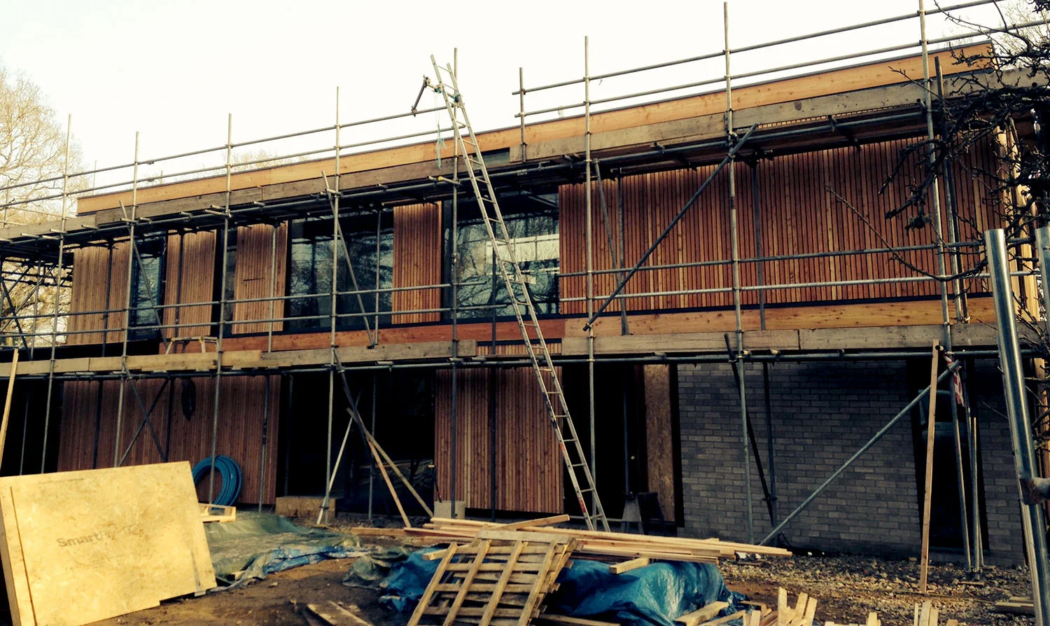 This was stick build job (timber frame cut and erected on site) using high quality materials, with an architectural plan that was based around balance, alignment and precision. We had a three week timeframe to have the timber frame built and weather sealed.