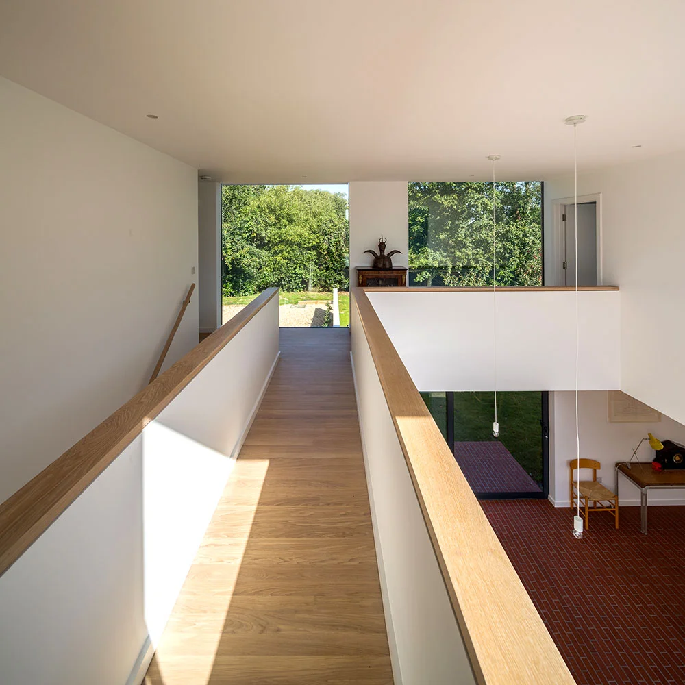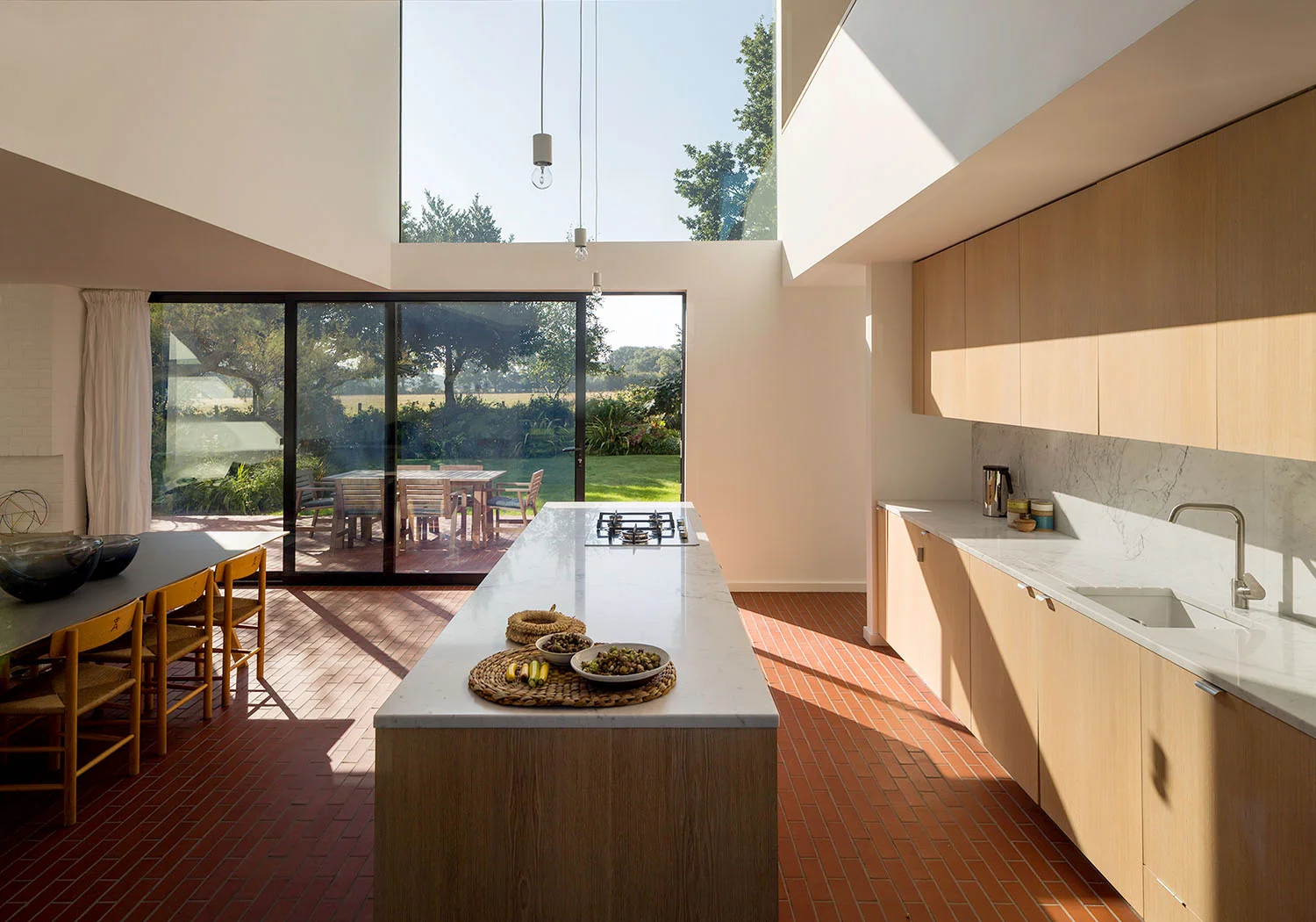 The windows were designed with large apertures and hidden frames to maximise natural light and the aspects of the forest and to maintain the clean lines of the design.
